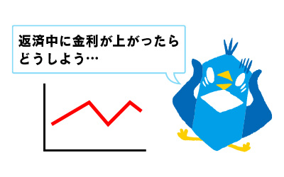 全期間固定金利なら返済中の金利上昇リスクはありません。(ただし、当初の月々返済額は一般的に変動金利型よりも多くなります)