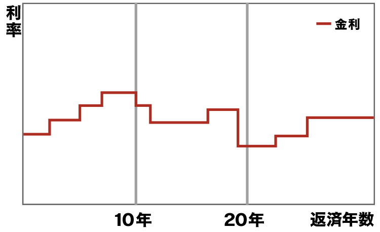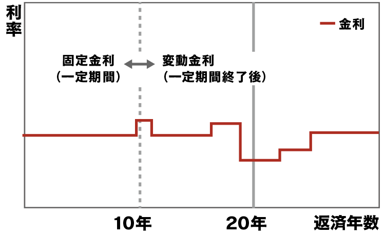 一定期間はお借入時の金利が適用され、その後は変動金利になります。