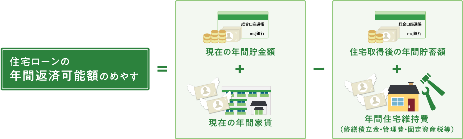 下の数式をもとに、いくらぐらいご返済できるか予想してみましょう。