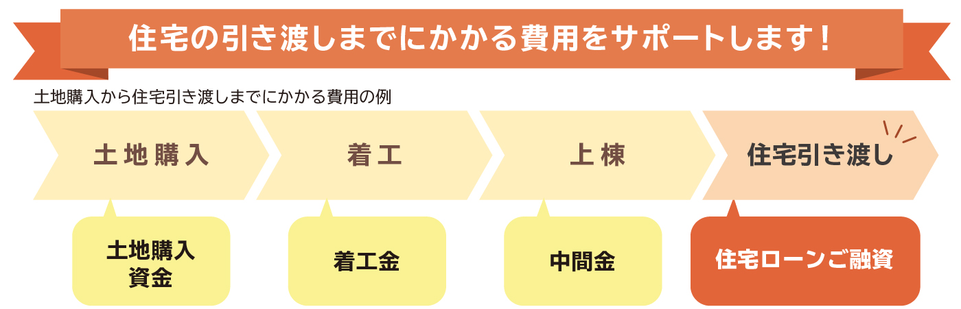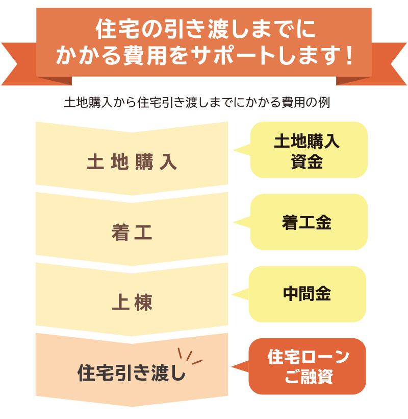 土地購入資金・請負契約締結時金・建築着工金・建築資金中間金に対応!