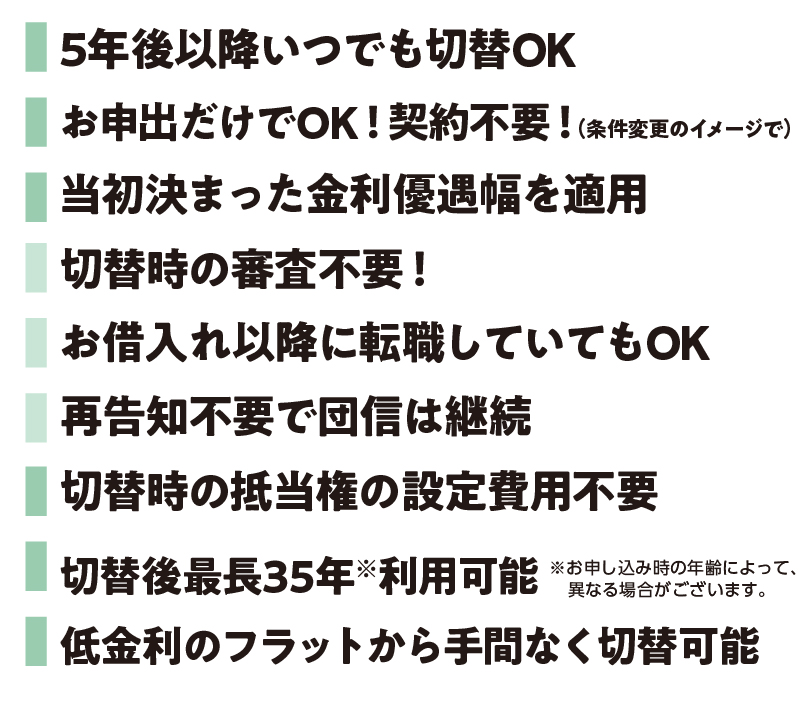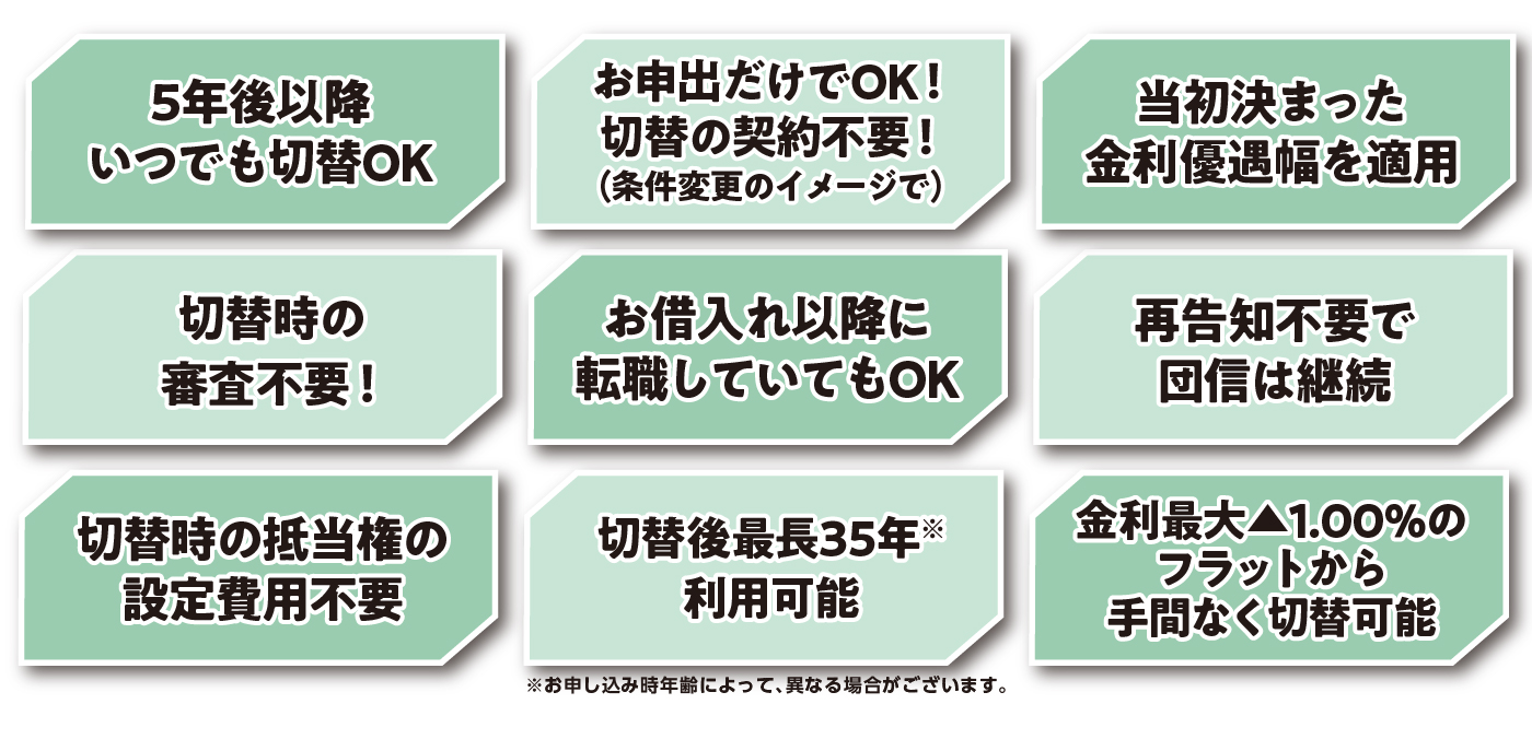- A4加入していた団信を切替後も継続できます(再告知不要)。
