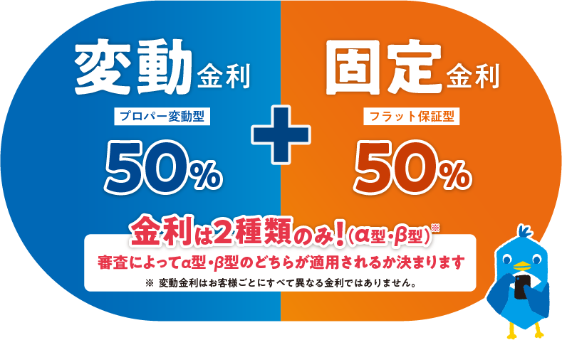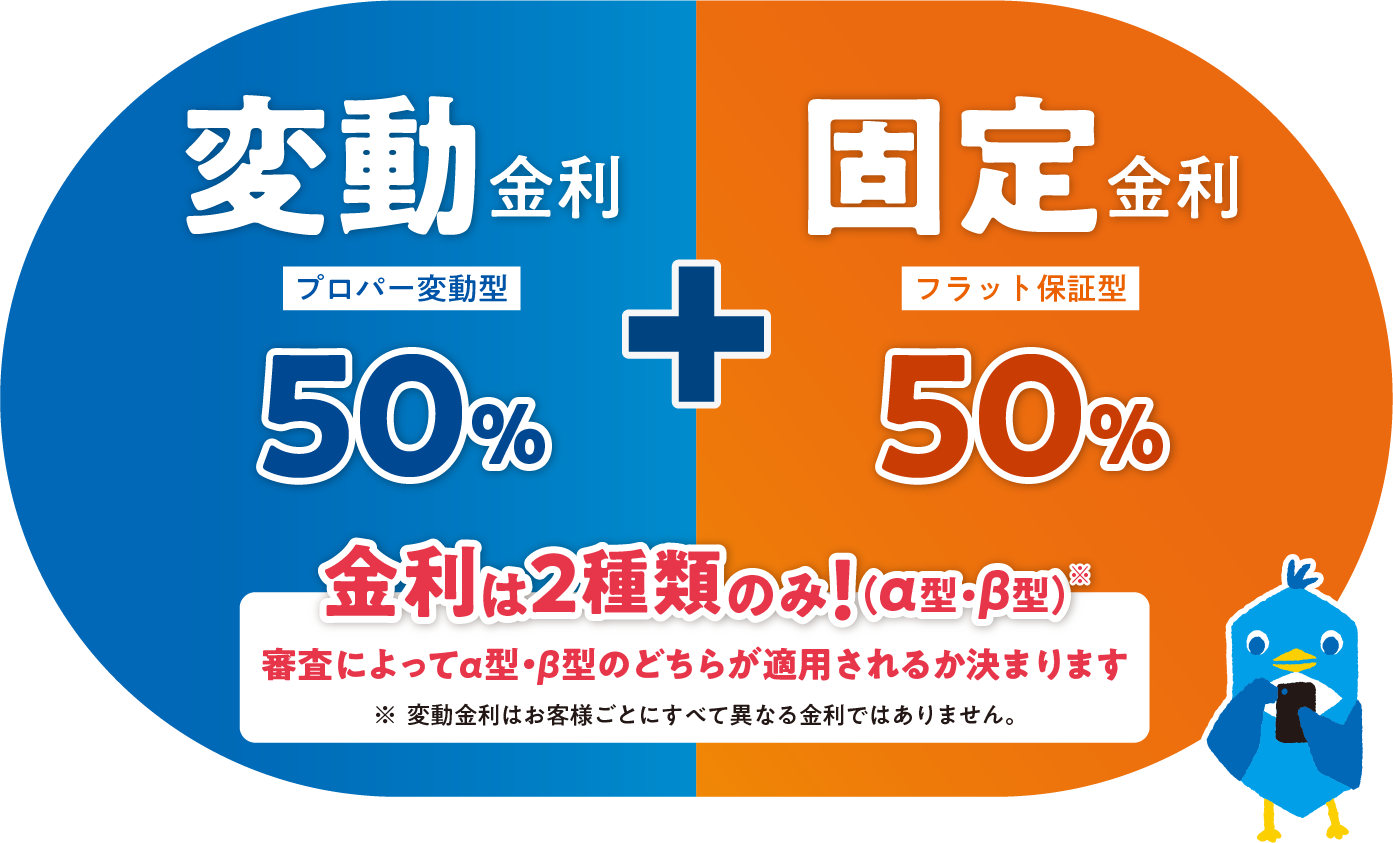 - ■短期の市場金利等に基づく当社基準金利等により決定する変動利率。市場金利が負の値となる場合、市場金利をゼロとみなします。(融資実行時の金利を適用(借入申込時の金利ではありません))
